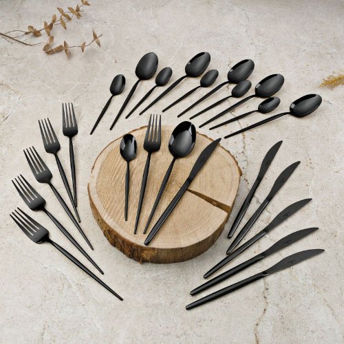 Sada příborů nerez 24 ks leštěná černá BH-3069