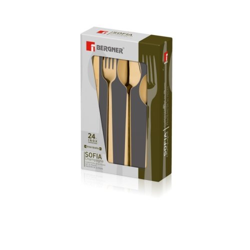 •Sada 24 kusů příborů: 6 vidliček, 6 nožů, 6 lžic a 6 dezertních lžic. • Vyrobeno z vysoce odolné a trvanlivé nerezové oceli. • Design v lesklé zlaté barvě. •Originální a elegantní příbory. • Doporučeno ruční mytí.Každý kus, navržený tak, aby zapůsobil, je pečlivě dokončen v lesklém zlatém tónu, který dodává luxus každé příležitosti. 24 kusů vyrobených z nerezové oceli pro zajištění dobré pevnosti a odolnosti všech kusů. Pociťte tento příbor jako velmi originální styl, který dodá vašim oslavám punc luxusu. Doporučuje se ruční mytí.
