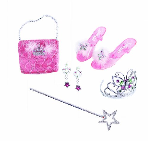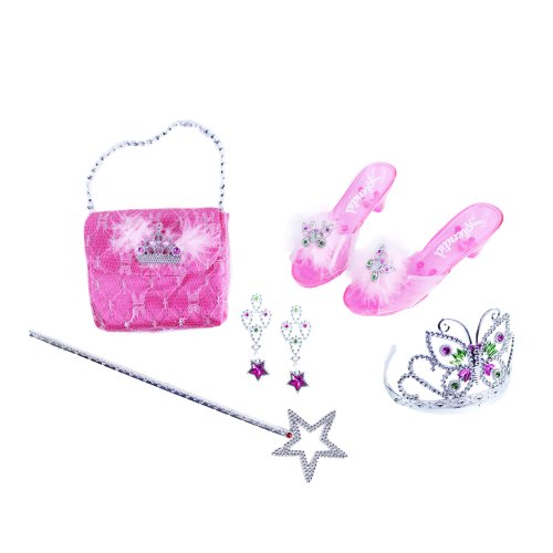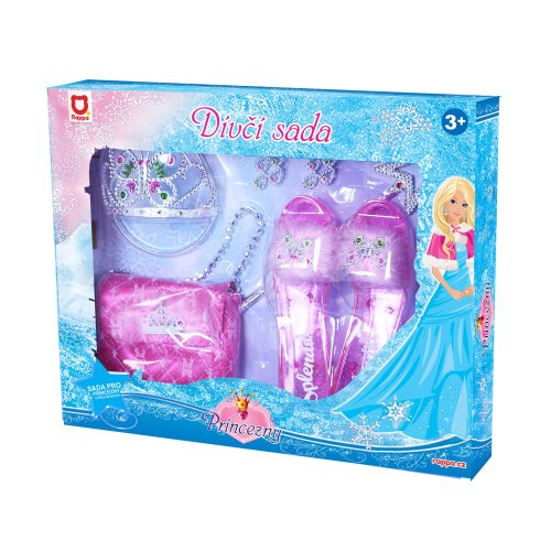Stát se na chvíli pohádkovou princeznou? Díky této sadě to zvládneš i ty! Set obsahuje střevíčky, kabelku, čelenku s korunkou, náušnice a hůlku. Velikost střevíčků je cca 19 cm. Doporučeno pro děvčata od 3 let.