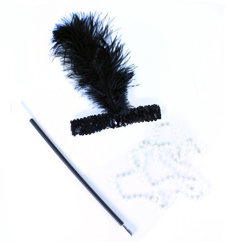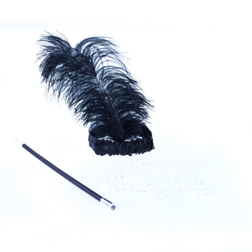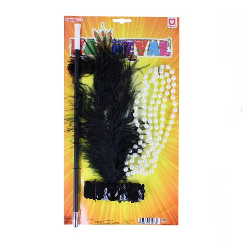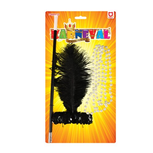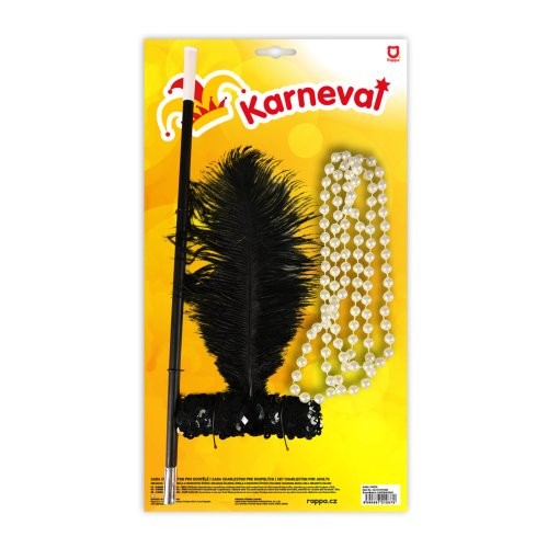 Okouzlující sada pro tanečnice. Set obsahuje čelenku s peřím, korále a cigaretovou špičku. Perfektní dopněk na karneval nebo párty!