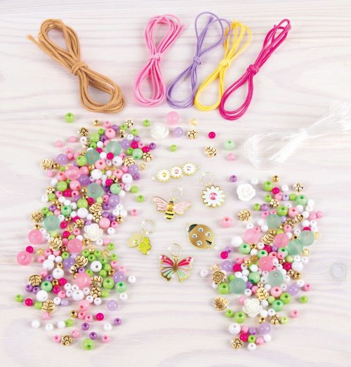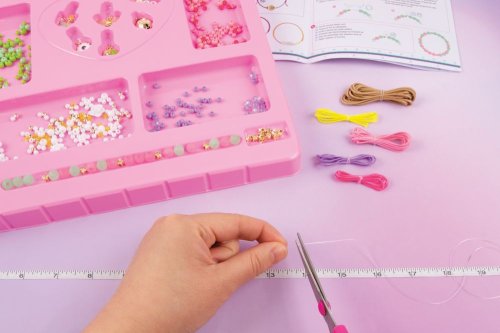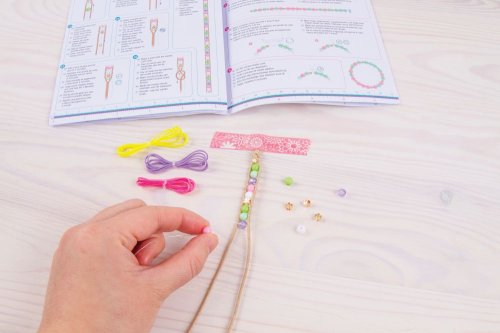 Sada obsahuje 5 barevných šňůr (4,5 m), elastickou šňůru (6 m), korálky, přívěsky s krystaly SWAROVSKI a instrukce. Vhodné od 8 let.