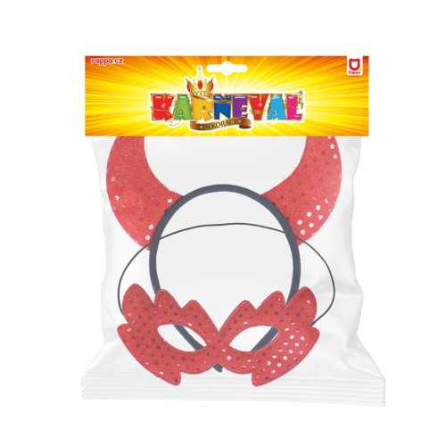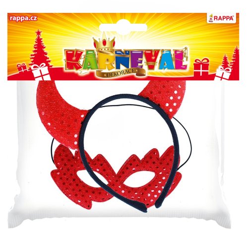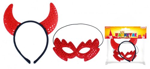 Karnevalová maska pro všechny čertice s flitry! V balení se nachází škraboška a perfektně sladěná čelenka s rohy. Super sada ke kostýmu nebo jen tak na párty!