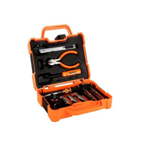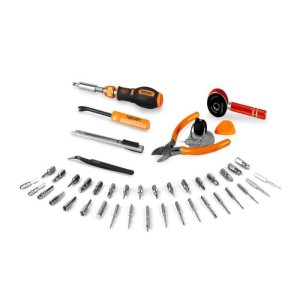 Sada ručního nářadí pro precizní práci, 47ks. Nářadí vhodné pro opravy veškeré drobné elektroniky počítačů, telefonů, hodinářství a další jemnou mechaniku. Základ sady tvoří šroubovák s protiskluzným povrchem, magnetický prodlužovací nástavec, pinzeta, ráčna, kleště, řezný nůž, škrabka, přísavka a různé typy bitů různých standartů a rozměrů (Torx, Hex, plochý a mnoho dalších). Sada je uložena v praktickém plastovém uzamykatelném pouzdře a ocení ji jak domácí kutil, tak i opravdový profesionál.