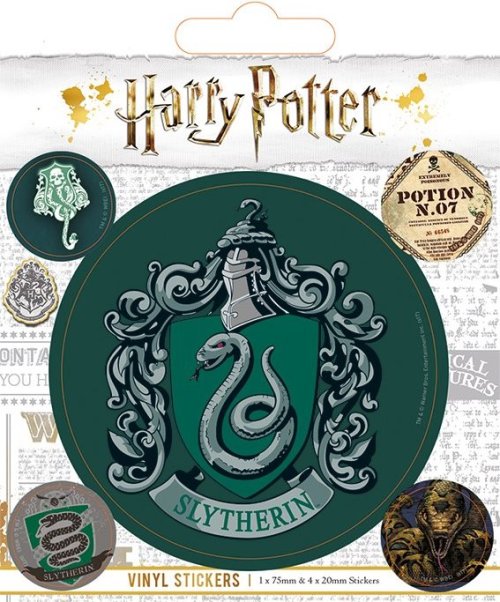 V tomto balení naleznete 5 vinylových samolepek (1 velkou a 4 menší) s motivy koleje Zmijozel z bradavické školy čar a kouzel, kde studoval Harry Potter.