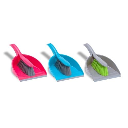Plastová smetáčková souprava obsahuje plastovou lopatku s gumovou lištou a tvarovanou rukojetí a smetáček s černými štětinami Mix barev - barvu nejde vybrat