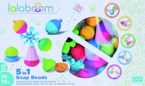 Korálkové bloky se dají navzájem spojovat tak, že se zacvakne jeden blok do druhého. Spojovací korálkové bloky lze rozkládat a skládat. Lze je libovolně kombinovat, a tak vytvářet různorodé barevné konstrukce. Jediným ohraničením je vlastní představivost! Vhodné pro děti 10–36 měsíců. Sada obsahuje: 30 dílů určených pro skládání, 2 okvětní lístky, 2 spojky, 2 provázky pro navlékání.