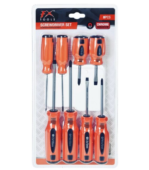 Vysoce kvalitní sada šroubováků z chrom-vanadiové oceli s magnetickými hroty a ergonomickými úchyty v oranžovo-černém provedení. Ideální pro domácí i profesionální použití.
