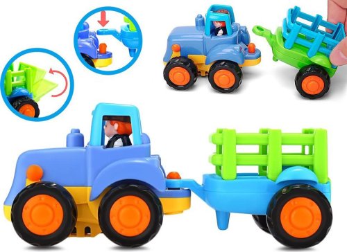 vyrobeno z kvalitního plastu v pestrých barvách, které zaujmou na první pohled vozidla jsou díky svým malým rozměrům ideální pro dětské ruce jsou velmi praktická, vejdou se kamkoli a můžete si je vzít s sebou na procházku nebo do školky přívěs lze od traktoru odpojit sada obsahuje 4 stavební vozidla s pohonem: míchačku na beton, sklápěč, bagr a traktor s přívěsem rozměry vozidel: cca 8 cm x 10 cm a 16 cm x 8 cm