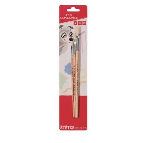 Balení obsahuje tři ploché štětce ve velikosti 4, 8, 12