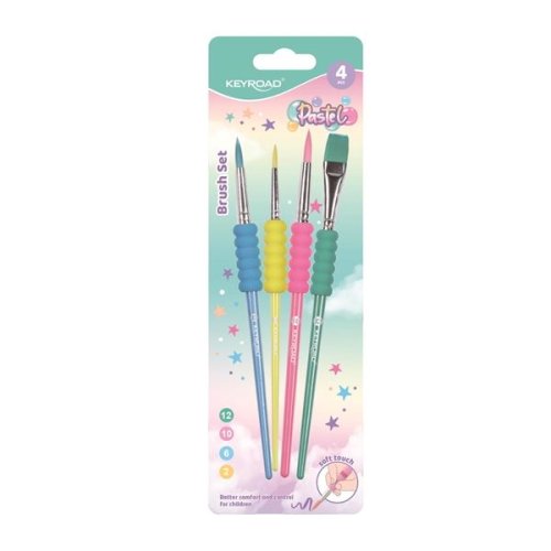 Sada 4 štetců v módní pastelové barvě s pěnovým měkkým úchopem pro snadné držení Štetce jsou vyrobeny z vysoce kvalitních syntetických vláken Obsahuje plochý štětec č. 12, kulatý štětec č. 10, kulatý …