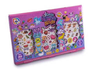 Objevte kouzlo dočasných tetování se sadou Tetovací studio Růžové, která nabízí přes 200 originálních motivů.