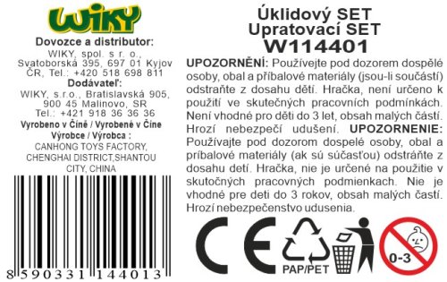 Úklidový set. 4 ks - lopatka 22 cm, smeták 51 cm, smetáček 16,5 cm, čistící prostředek 10 cm.