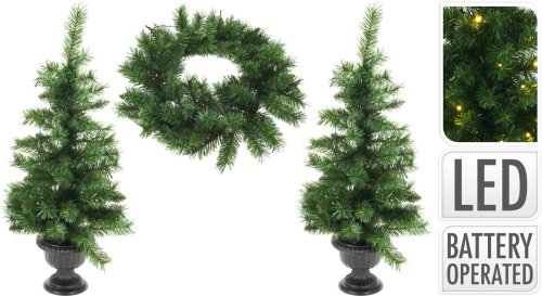 Vánoční LED sada (2 x stromek 90 cm v květníku, 1 x věnec 53 cm + osvětlení) ZE.