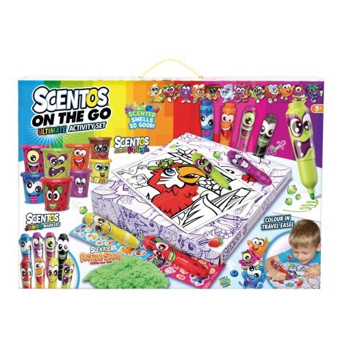 Sada voňavá Scentos na cesty Ultimate je kreativní set určený pro děti, které rády tvoří a objevují nové způsoby zábavy mimo domov. Tento praktický přenosný balíček obsahuje různé kreativní nástroje, které podporují fantazii a manuální dovednosti. Součástí sady jsou jumbo fixy s veselými obličeji, které nejenže umožňují pohodlné držení, ale také voní, což přidává další rozměr tvoření. Fixy jsou barevně pestré a jejich balení je navrženo tak, aby bylo snadné vzít je kamkoliv s sebou.