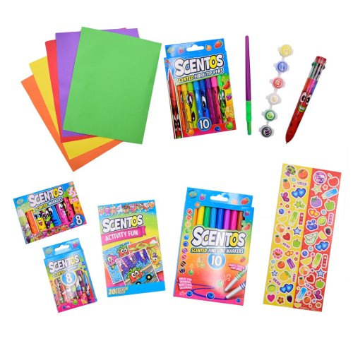 Voňavá sada Scentos střední podporuje rozvoj jemné motoriky, fantazie a smyslového vnímání dětí, přičemž nabízí hodiny kreativní zábavy. Kombinace různých výtvarných pomůcek a vůní činí z této sady ideální nástroj pro rozvoj uměleckých dovedností i pro zábavné trávení volného času.