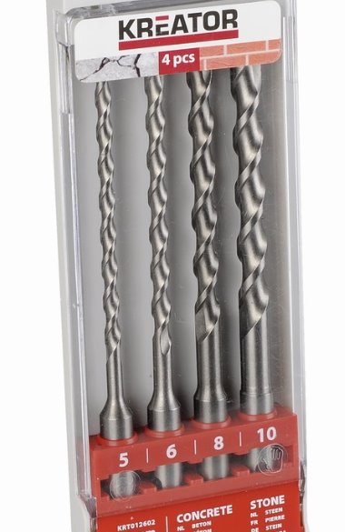 nachází 4 kusy SDS Plus vrtáků ve stříbrné barvě. Na výběr tak
