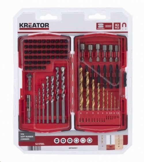 V této 82dílné sadě vrtáků a šroubovacích bitů najdete nepochybně to správné příslušenství pro všechny vaše vrtačky a šroubováky: PH bity, PZ bity, T bity, v různých velikostech, držáky bitů, vrtáky do dřeva a kovu, nástrčné klíče. Sada je dodávána v praktickém pouzdru s pogumovanými rohy o rozměru 193 x 113 x 53 mm.