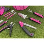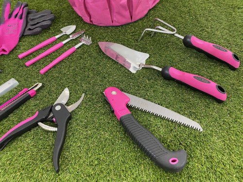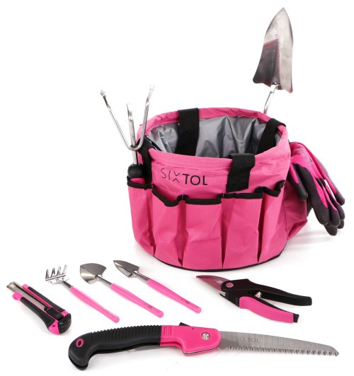 Pojďte pečovat o záhony s praktickou sadou zahradního nářadí Sixtol Garden Pink. V brašně najdete celkem 10 kusů náčiní pro každého zahradníka a pěstitele. Využijete ji pro snadný přenos nářadí, ale díky její vodotěsnosti také jako kýbl na vodu, hlínu, vytrhaný plevel a další věci.