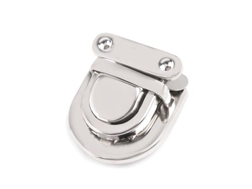 Kovové zapínání na tašku či kabelku se skládá ze tří dílů. Plíšek se připevní na vnitřní část tašky, díl s nožkami na vnější část (nožky se zaháknou do plíšku a roztáhnou) a třetí díl se zoubky na její chlopeň. Díl na chlopeň se upevní tak, že rozevřete čelisti, na kterých jsou zoubky a mezi ně vložíte materiál, na který chcete zapínání upevnit. Následně čelisti sevřete, zoubky tak zamezí pohybu látky. Rozměry: - plíšek: 19 x 27 mm - díl s nožkami: 26 x 27 mm - díl na chlopeň: 25 x 25 mm Celkové rozměry po zapnutí jsou 26 x 29 mm.