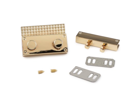 Designové kovové zapínání elegantně a prakticky ozdobí tašky, kabelky a batohy s klopou. Otevírá se posunutím knoflíku. Horní díl se připevňuje pomocí přiložených šroubků. Spodní díl se upevňuje nožičkami, které se z rubové strany zajistí plíšky.