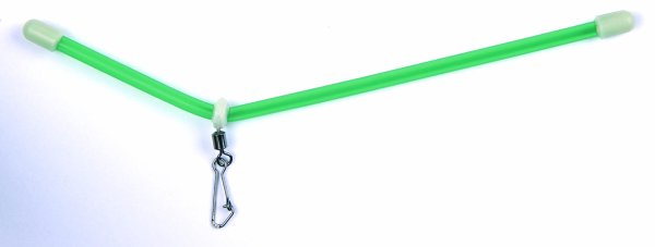 Boční přívěs „hokejka“ s karabinkou, do které můžete připnout krmítko nebo olůvko. Zajištuje plynulý průchod vlasce a minimalizuje riziko zamotání návazce.