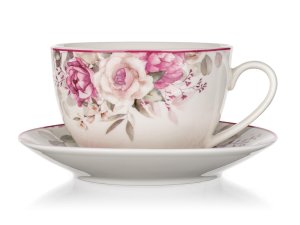 Šálek s podšálkem ROSE, s krásným květinovým vzorem, se hodí k podávání kávy nebo čaje při všedních i svátečních příležitostech. Šálek s podšálkem je vhodný do mikrovlnné trouby i myčky. S tímto dekorem si můžete zakoupit i další produkty a vytvořit si tak krásnou servírovací sadu.