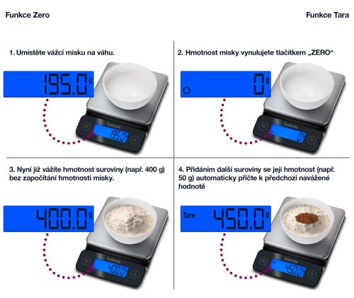 pro postupné dovažování a sčítání hmotnosti ingrediencí.