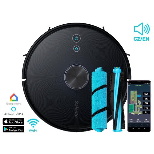 Intuitivní aplikace Salente umožní ovládat vysavač kdekoliv. Informuje vás o aktuálním stavu vysavače, lze zde spustit různé režimy úklidu, nastavit úrovně vysávání nebo vytírání, plánovaný úklid nebo dobu kdy nechcete být rušeni. Mobilní aplikace je v českém jazyce a je určena pro operační systémy Android a iOS.