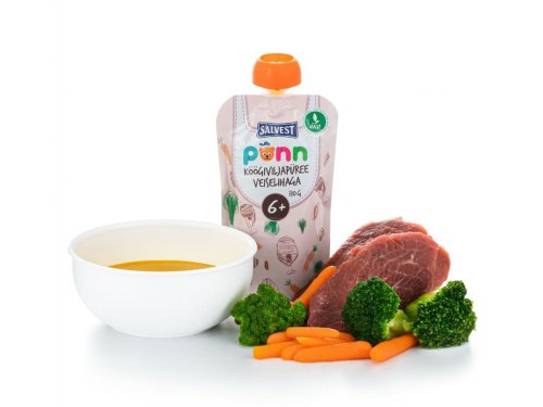 Mrkev, brambory, brokolice, hovězí maso, trocha vody a kapka řepkového oleje, to všechno v bio kvalitě, tvoří náplň kapsičky, která je opatřena praktickým uzávěrem pro případ, že by snad vaše dítě nespořádalo celou tuto dobrotu najednou. Není do ní přidáván žádný další cukr, umělá barviva, aromata ani konzervanty. Výrobek je tepelně opracovaný a jeho trvanlivost zajišťuje šetrná sterilizace. Příkrm byl vyvinut ve spolupráci s pediatry.