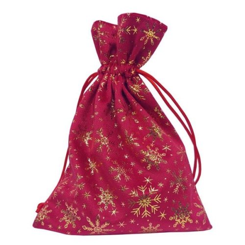 Sametový červený sáček, zlaté vločky, 20 x 15 cm