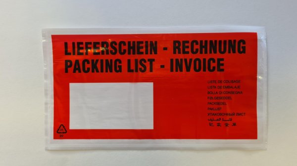 Samolep.kapsy na zásilky-DL,průhl.+červená,1000 ks