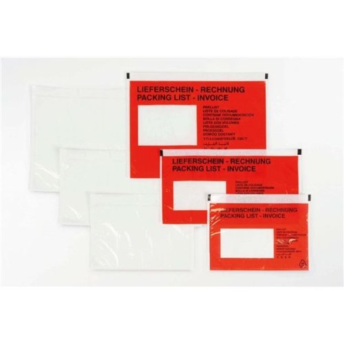 Samolep.kapsy na zásilky-DL,průhl.+červená, 250 ks