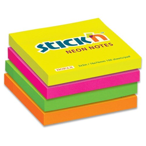 Zářivé samolepicí bločky, 100 listů. 76 x 76 mm.