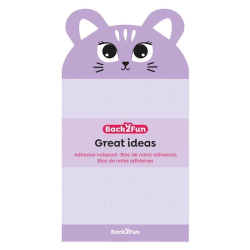 Rozzař svůj den s veselými a trendy produkty, které přinášejí radost smích a spoustu dobré nálady. Přidej se na vlnu plnou zábavy a nech se vtáhnout do světa plného barev a pozitvní atmosféry. <br><br>Barevné bločky s tvarem zvířátek, které zpestří každý vzkaz či připomínku. Samolepicí zadní strana pro snadné připevnění na sešit, učebnici, nástěnku nebo stůl. Obsah balení 60 listů.<br><br>• rozměry: 90 × 165 mm<br>• formát: 60 listů, 90 gr/m2, tečky<br>• motiv: kotě<br>• samolepicí zadní strana<br>• vhodné pro psaní vzkazů, poznámek a připomínek