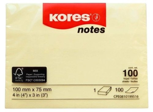 Samolepicí bloček, žlutý, může být použit a aplikován znovu, listy se vzájemně neslepují a nekourtí, nezanechává stopy na lepené ploše, 100 listů.