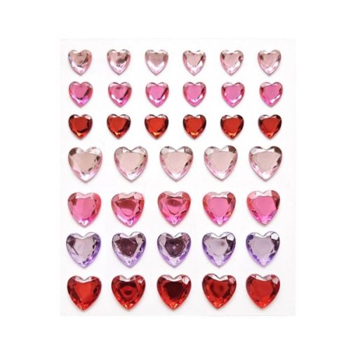 Samolepicí dekor. srdíčka s kamínky, červené, 38ks