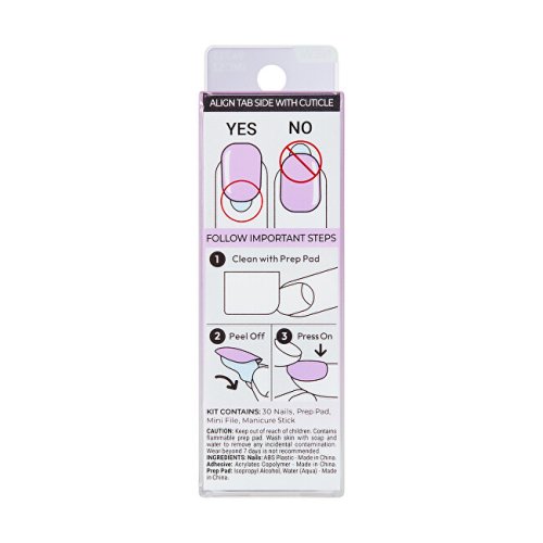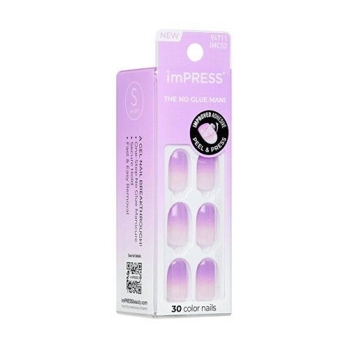 Samolepící nehty ve světle fialovém ombre. S technologií No Glue, která nepotřebuje žádné lepidlo, nepoškozuje přírodní nehty a poskytuje až 7 dní perfektní manikúry díky nově vylepšenému adhezivu. Exkluzivní Color Reimagined technologie věrně napodobuje profesionální gelovou úpravu, kterou běžný lak nikdy nenahradí.