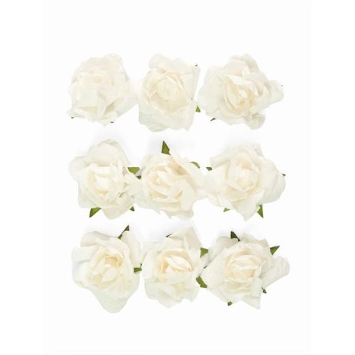 Samolepicí papírové květiny - růže, bílé, 9 ks