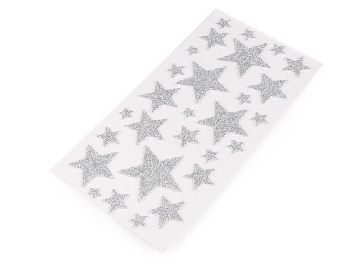 Dekorační hvězdy s glitry jsou vyrobené z pěnové gumy (moosgummi). Na spodní straně mají samolepicí vrstvu. Jsou vhodné k nalepení na zabalené dárky, pozvánky, krabičky, alba, deníky apod. Jsou nalepené na jednom archu podkladové folie, ze které se pohodlně odlepí. Doporučujeme je lepit na suchý, hladký a pevný povrch. Průměry hvězd jsou 1,7 cm, 2,5 cm, 3 cm, 4,7 cm, 6 cm, 6,5 cm a 7 cm.