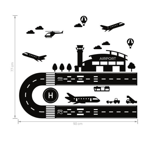 Krásná nálepka na podlahu Letiště. Letištní podlahový ticker byl vytvořen pro fanoušky nebeských dobrodružství. Vždyť kdo v našem dětství nechtěl být pilotem :). Pomáháme plnit tyto sny a zároveň zaručujeme nadpozemskou zábavu, aniž bychom zabírali zbytečné místo v dětském pokoji. Náš produkt je jedinečný a jediný svého druhu. Vyrobeno ze speciální fólie a matného laminátu, díky kterému je jeho povrch odolný a nesmazatelný. Samolepka je vhodná na podlahu, ale lze ji aplikovat i na jakýkoli jiný hladký povrch, jako jsou stěny nebo nábytek. Nečekejte déle. Dopřejte svému dítěti mimořádnou zábavu a zkraťte si čas na úklid. Tato sada obsahuje: letiště (90x77 cm) a doplňkové prvky. Přesné rozměry jsou uvedeny na poslední fotce.<BR>- rozměry: zobrazeno na poslední fotce<BR>- materiál: nejvyšší kvalita PVC fólie<BR>- ochrana: odolná proti poškrábání matný laminát<BR>- odolný: fólie odolná vlhkosti a UV záření<BR>- řez: mimo obrys - nemají podklad<BR>- obal: zasíláno v bio tubách