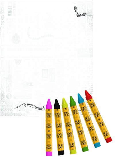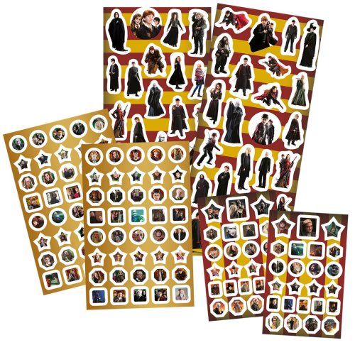 Set obsahuje téměř 500 různých druhů samolepek, blok (32 listů) ke psaní i malování a 12 voskovek. Tento velký samolepkový set obsahuje více než 500 samolepek s motivy oblíbených postav a scén z kouzelnického světa. Součástí balení je také blok s obálkou Harry Potter a sada 12 voskovek, se kterými si děti mohou vytvářet vlastní magické obrázky. Vhodné pro děti od 3 let.