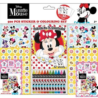 Set obsahuje téměř 500 různých druhů samolepek, blok (32 listů) ke psaní i malování a 12 voskovek.