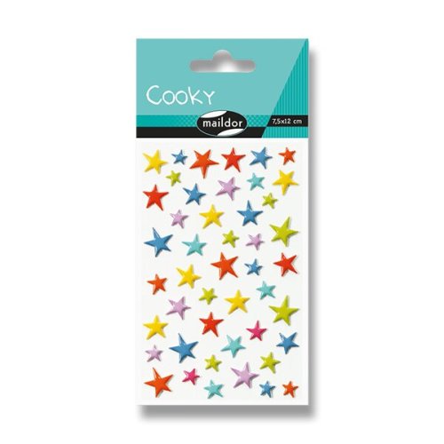 Samolepky Maildor 3D Cooky s motivy barevných hvězdiček a s efektem 3D. Balení obsahuje 1 arch s 46 samolepkami. Rozměr balení 7,5 x 12 cm.