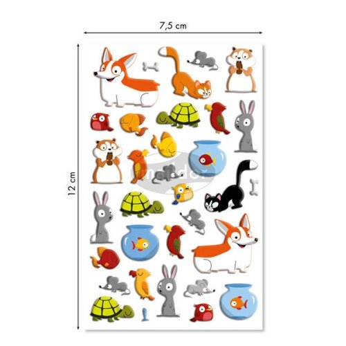 Samolepky Maildor 3D Cooky s motivy domácích zvířátek a s efektem 3D. Balení obsahuje 1 arch s 33 samolepkami. Rozměr balení 7,5 x 12 cm.