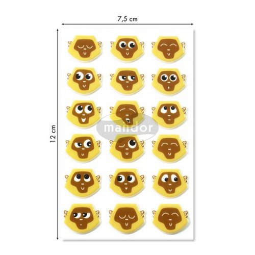 Samolepky Maildor 3D Cooky s motivy emotikonů opiček a s efektem 3D. Balení obsahuje 1 arch s 18 samolepkami. Rozměr balení 7,5 x 12 cm.