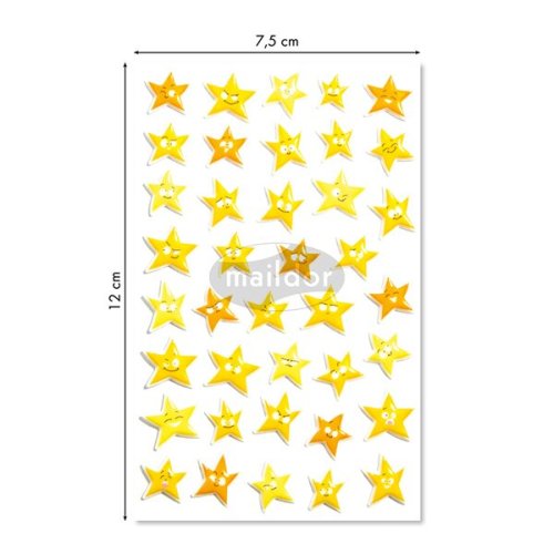Samolepky Maildor 3D Cooky s motivy hvězd a s efektem 3D. Balení obsahuje 1 arch s 39 samolepkami. Rozměr balení 7,5 x 12 cm.