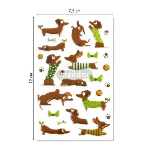 Samolepky Maildor 3D Cooky s motivy rozdováděných jezevčíků a s efektem 3D. Balení obsahuje 1 arch s 26 samolepkami. Rozměr balení 7,5 x 12 cm.