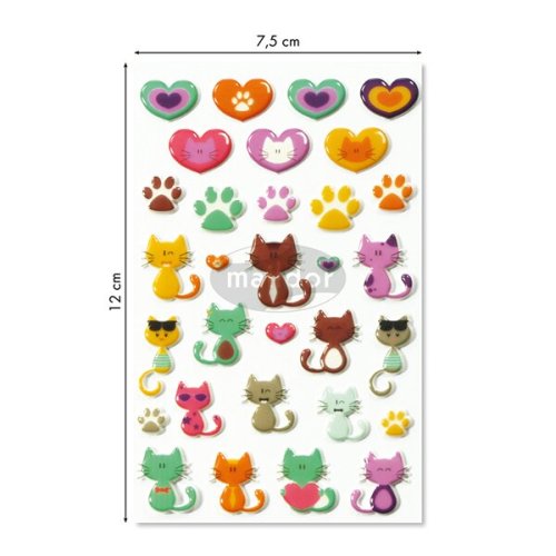 Samolepky Maildor 3D Cooky s motivy kočiček a srdíček a s efektem 3D. Balení obsahuje 1 arch s 31 samolepkami. Rozměr balení 7,5 x 12 cm.