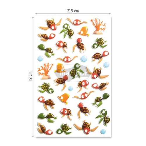 Samolepky Maildor 3D Cooky s motivy mořské želvy a s efektem 3D. Balení obsahuje 1 arch s 30 samolepkami. Rozměr balení 7,5 x 12 cm.
