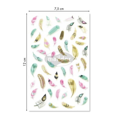 Samolepky Maildor 3D Cooky s motivy peříček a s efektem 3D. Balení obsahuje 1 arch s 50 samolepkami. Rozměr balení 7,5 x 12 cm.